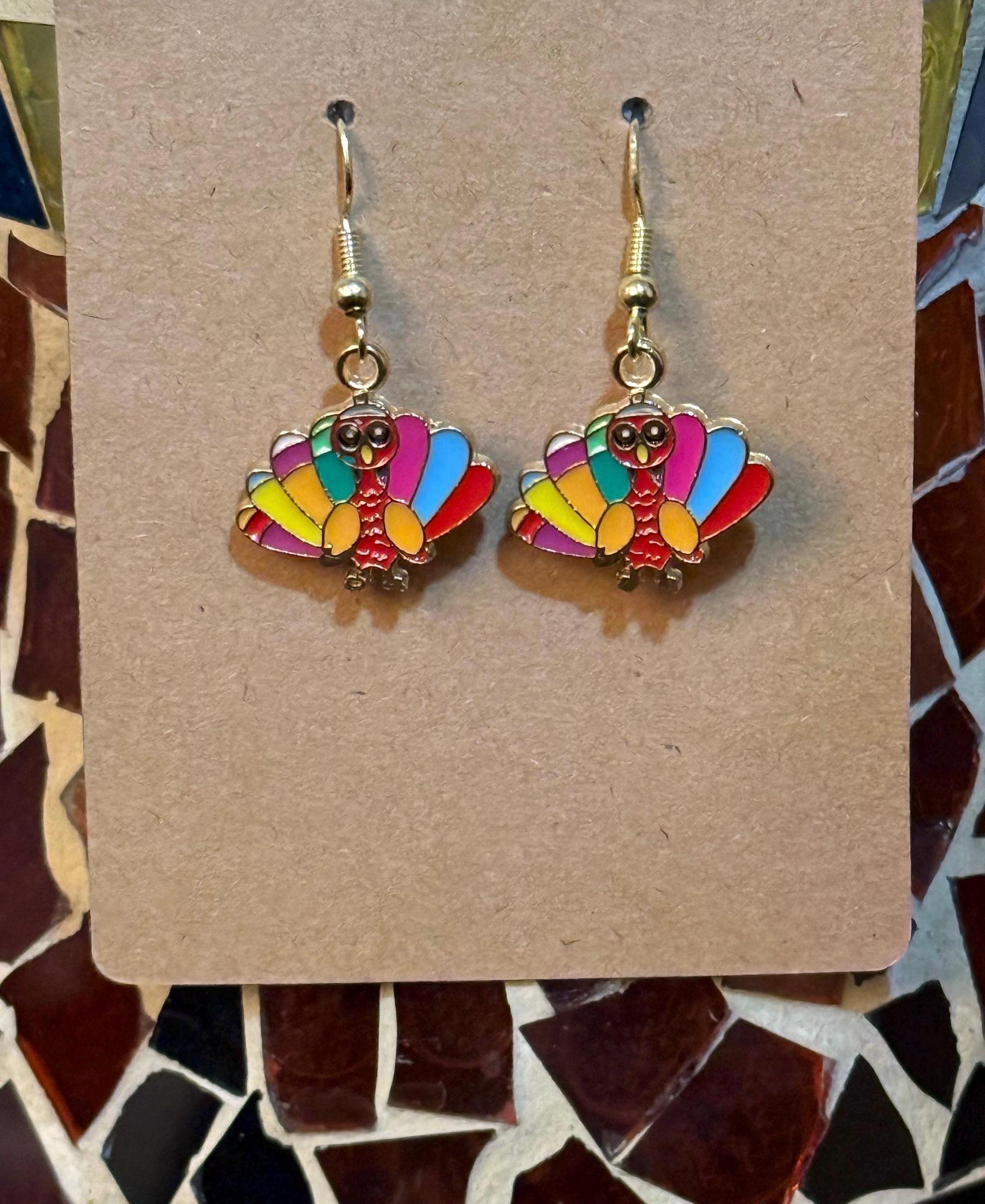 Colorful Turkey Earrings ron Gold Plated Fish Hooks