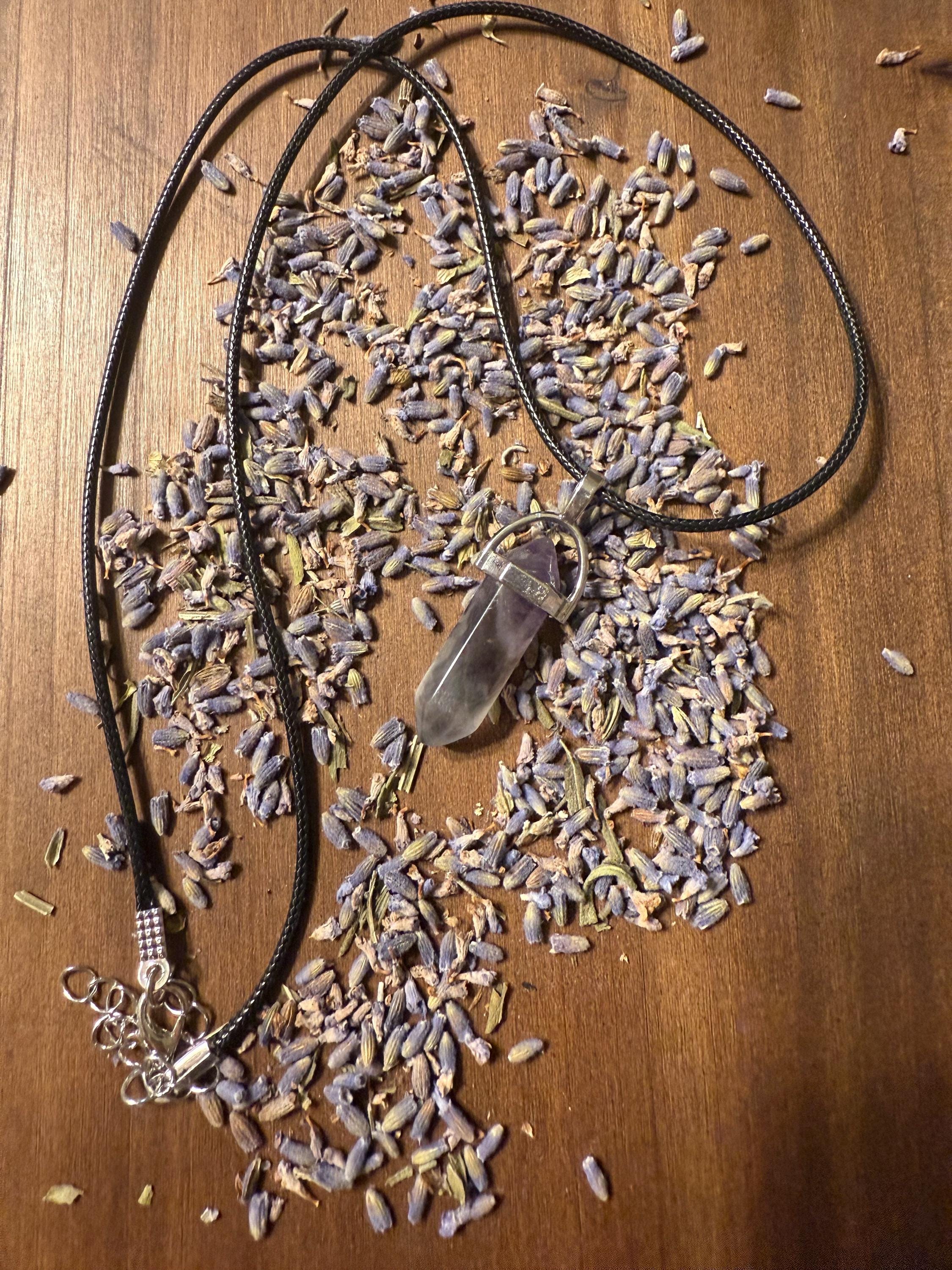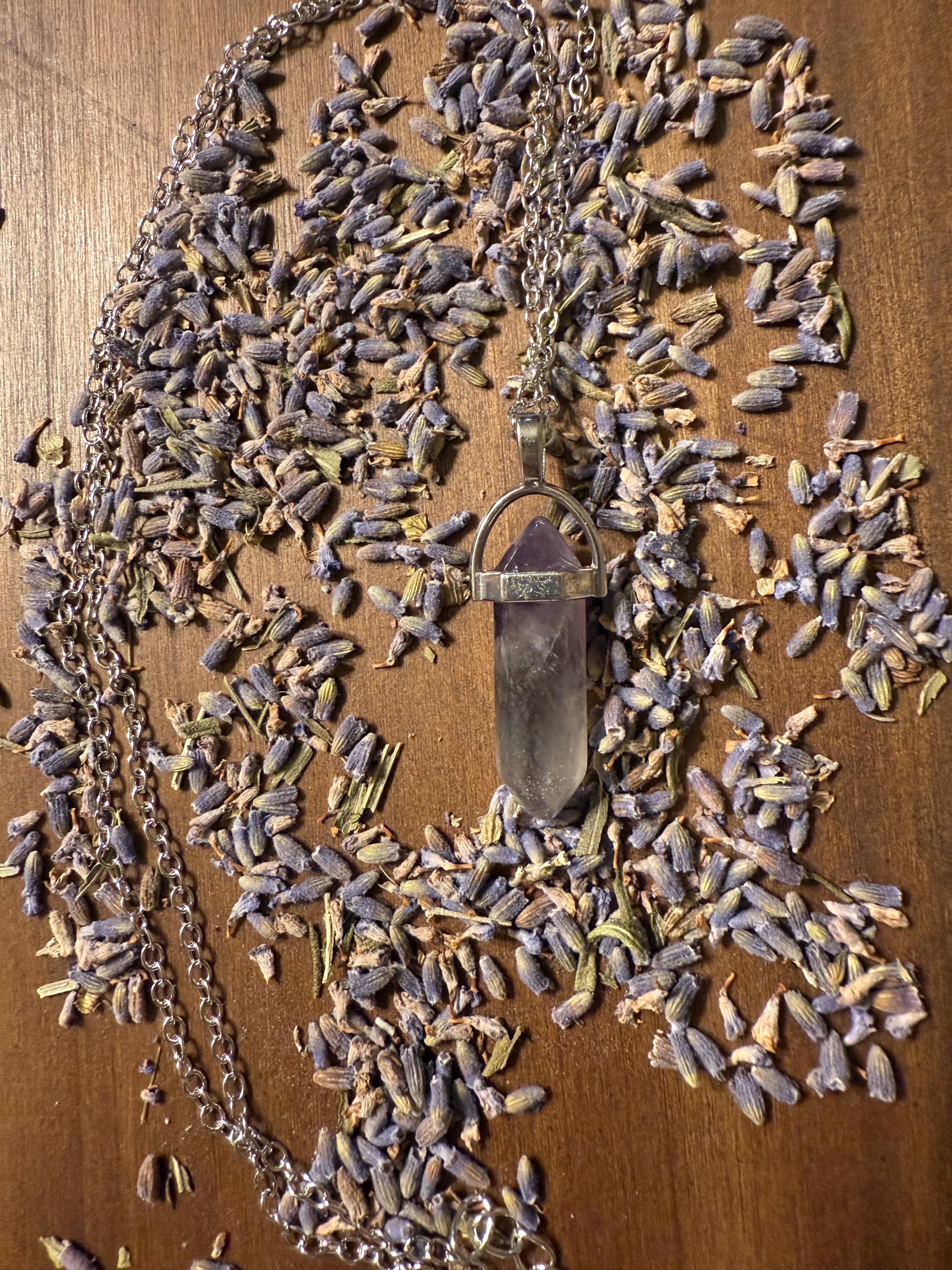 Amethyst Pendant Necklace with Nylon or Silver Chain